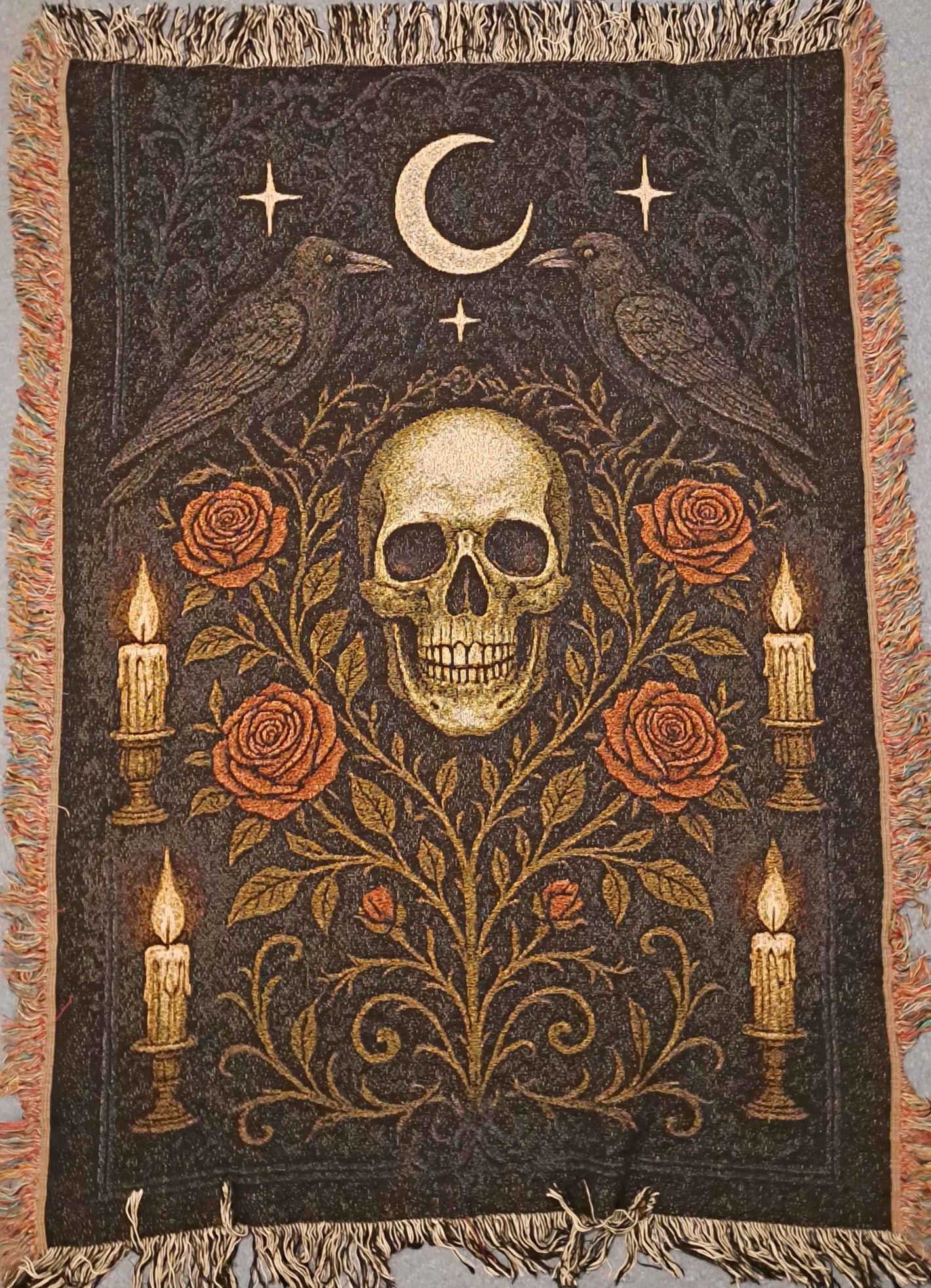 Diese Decke trifft anders, wenn alles still ist und nur ein paar Kerzen flackern. Warm, schwer und irgendwie magisch – als würde sie einen ganz sanft in die Nacht hineinziehen. Genau so muss eine Goth-Decke sein.